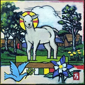 Lamb Series No.1 • Acrylic on Canvas • 10″ X 10″ • Donated to St. Vincent de Paul Church, Huntington Beach, CA